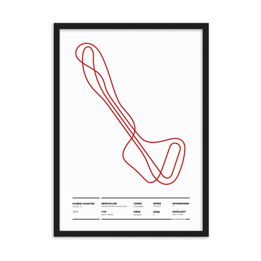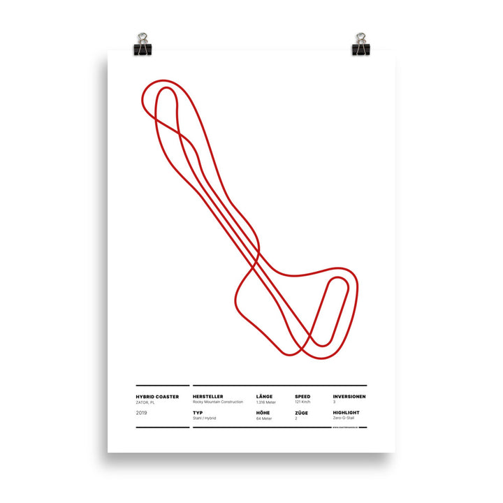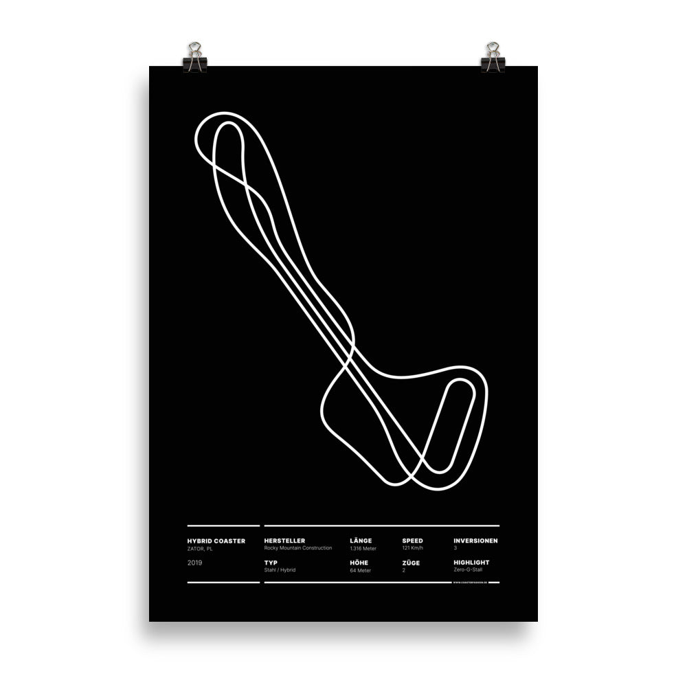 Coaster layout of the best and largest hybrid coaster in Europe. Spectacular layout in minimalistic design printed with deep black.